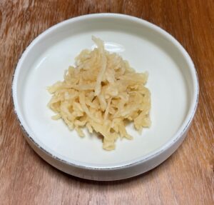 「『はりはり漬け』は切り干し大根を生姜・唐辛子などと一緒に醤油・酢・昆布出汁などの調味液に漬けた料理のことで、大根を噛んだ時の“はりはり”した食感が名前の由来とされています」